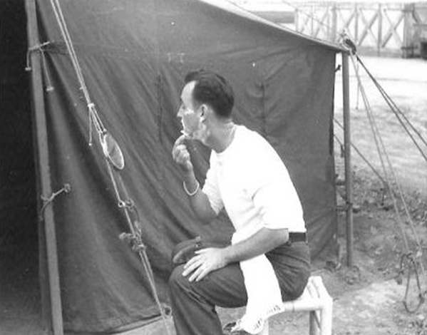 I am a stakeholder at Shu Lin Kaoand was the first enlisted Navy person there. I took the picture of John Korn shown shaving in front of our tent. Frank Willis