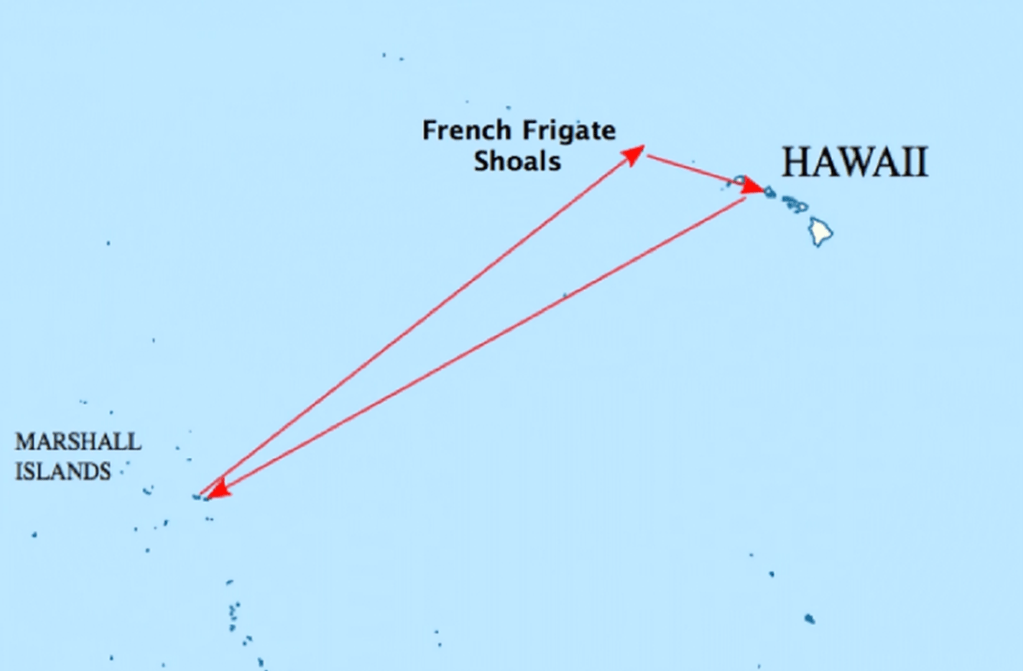 On mission day, only two of the planned 5 flying giants were available. The first H8K aircraft was flown by Pilot Lieutenant Hisao Hashizume, the commander of the mission. Ensign Shosuke Sasao was flying the second H8K. The mission started at Wojte Atoll (Marshall Islands). Each aircraft was loaded with four 550 lb bombs. From Wojte, the flying boats flew 1,900 mi to French Frigate Shoals. After refueling here, the planes set off for Pearl Harbor that was 560 mi away.