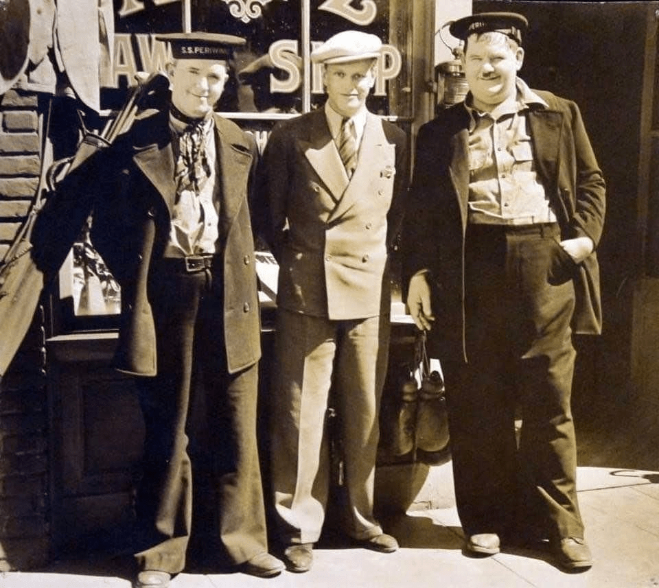 This is a rare photo of Stan Laurel and Oliver Hardy posing with a fifteen year old boy in 1936. The boy’s father, Alan Hale, was filming a movie with Stan and Ollie at the time. This is a photo of Alan Hale Jr., who was to become a TV immortal playing “The Skipper” on TV’s beloved series “Gilligan’s Island.”
