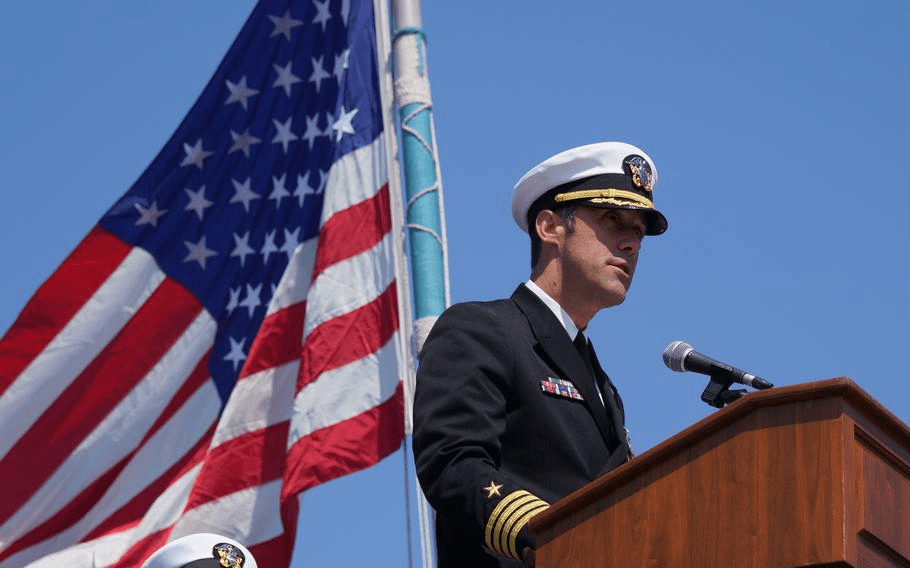 Featured image: Capt. Justin Harts, outgoing commander of Destroyer Squadron 15, addresses the change-of-command audience aboard the guided-missile destroyer USS John Finn at Yokosuka Naval Base, Japan, on April 4, 2025. (Akifumi Ishikawa/Stars and Stripes)