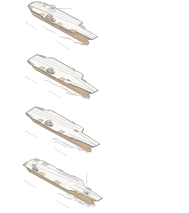Note: Artist impressions based on photos, models and diagrams of the carriers
