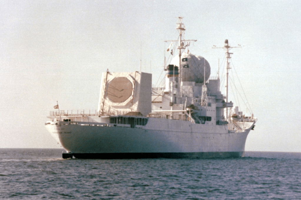 Decommissioned on January 1, 1972, the Observation Island returned to service under the Military Sealift Command on August 18, 1977, now redesignated USNS Observation Island (T‑AGM‑23). She was outfitted with the Cobra Judy system, an AN/SPQ‑11 phased-array radar, designed to collect detailed telemetry and tracking data on missile launches—a crucial capability for arms treaty compliance monitoring.